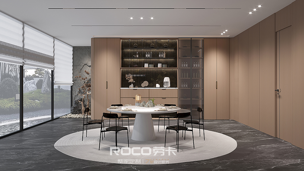 以中性偏灰的自然木纹色为主调,k8凯发天生赢家一触即发融入海棠花元素,使用现代设计手法,摒除传统中式的深沉、厚重之感,以新时代审美打造简洁明快的新中式风空间美感。